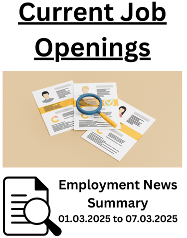 Current Job opportunities in India as per Employment News for the week from 1st March to 7th March 2025